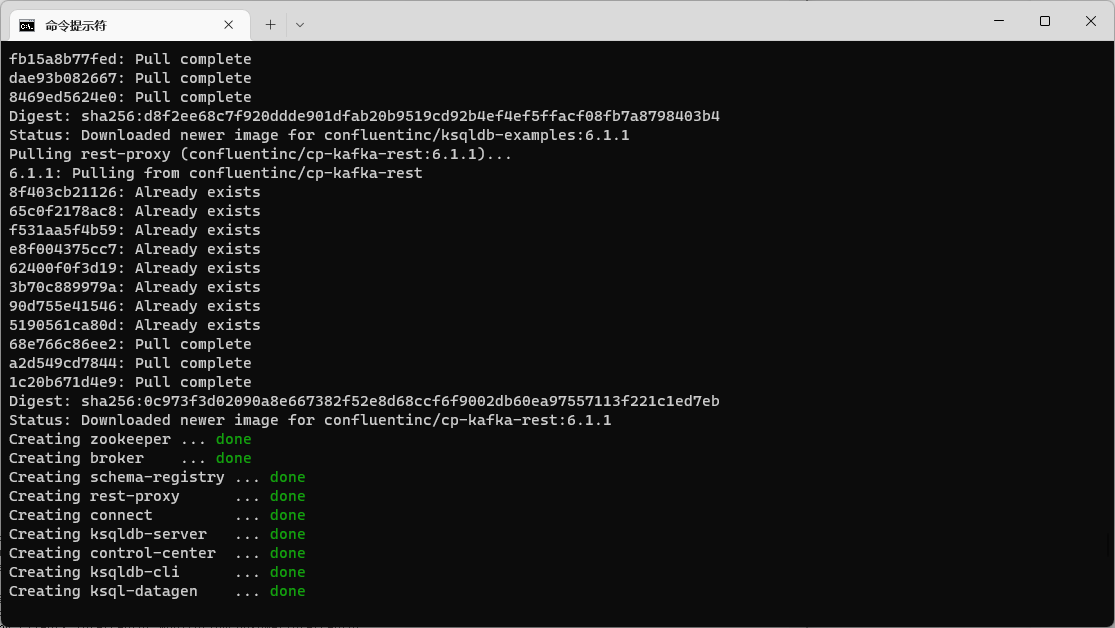 docker-compose up -d,等待镜像拉取和运行。