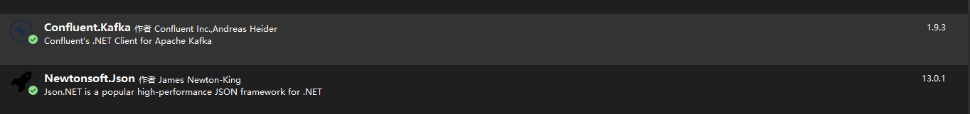 安装Confluent.Kafka和Newtonsoft.Json Nuget包。