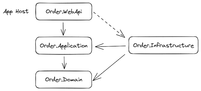 虚线箭头和理论有所区别,因为webapi层实际在解决方案中还承担着host的作用。